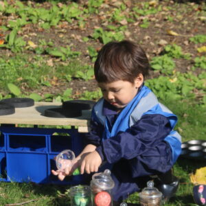 Kew College Prep Nursery children are taught by a qualified teacher, which research suggests leads to better outcomes for young children. As the children get older and progress through the Nursery, they will start to take part in specialist lessons in Music, French, PE, Dance and ICT, taught by subject experts, and enjoy weekly visits to the school library. This prepares them perfectly for life in Reception, where they continue specialist lessons with the same teachers. The Nursery curriculum promotes both academic and emotional growth, with a focus on building a solid foundation for future learning. The dedicated team of highly trained staff guide and inspire the children through a range of activities that nurture curiosity, problem-solving skills, and social development, including regular Forest School style outdoor learning sessions